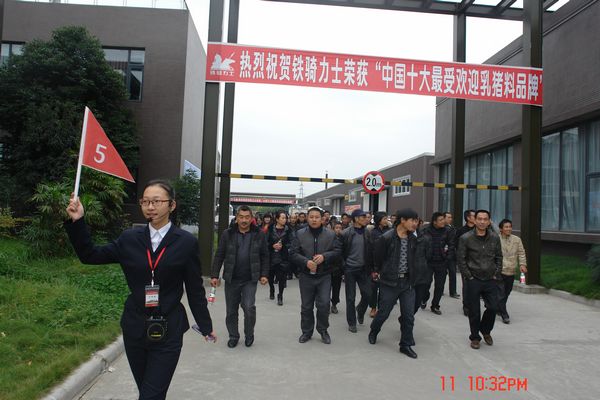11月8号,鐵騎力(li)士公(gōng)司開啓了(le)“萬人(ren)進(jin)鐵騎參觀體(ti)驗(yàn)之(zhi)旅”。本(ben)次活動(dòng)預計(ji)從(cong)2013年(nian)11月至2014年(nian)1月邀請(qing)10000位養殖戶(hu)深入綿陽(yáng)總部(bu)參觀,現(xian)場(chang)體(ti)驗(yàn)優(you)質(zhi)飼料生(sheng)産(chan)過(guo)程(cheng),深入了(le)解鐵騎力(li)士齊(qi)業文(wén)化。