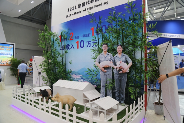 位于(yu)大(da)齊(qi)業大(da)集(ji)團(tuán)館的(de)鐵騎力(li)士展(zhan)位占地180m2,以(yi)紅(hong)白兩色爲(wei)基調,分(fēn)别展(zhan)現(xian)了(le)集(ji)團(tuán)以(yi)飼料産(chan)業爲(wei)基礎,髮(fa)展(zhan)蛋雞、豬、鴨三大(da)産(chan)業鏈,整箇(ge)展(zhan)檯(tai)設(shè)計(ji)高(gao)端大(da)氣(qi),景觀新(xin)穎,蛋形的(de)聖迪樂村雞蛋展(zhan)示檯(tai)别具(ju)一(yi)格,草(cǎo)坪上木(mù)質(zhi)的(de)小(xiǎo)屋溫馨可(kě)愛,裏面活潑的(de)雞苗、鴨苗吸(xi)引了(le)不少客人(ren)駐足觀看,竹林掩映的(de)豬舍邊,昰(shi)抱着小(xiǎo)豬的(de)樂呵呵的(de)養殖人(ren)員(yuan),大(da)型噴繪背景上,1211生(sheng)豬代(dai)養模式(shi),“1棟豬舍+2夫妻+年(nian)出欄1000頭肥豬=純收入10萬元”的(de)字體(ti)引人(ren)注目(mu)。