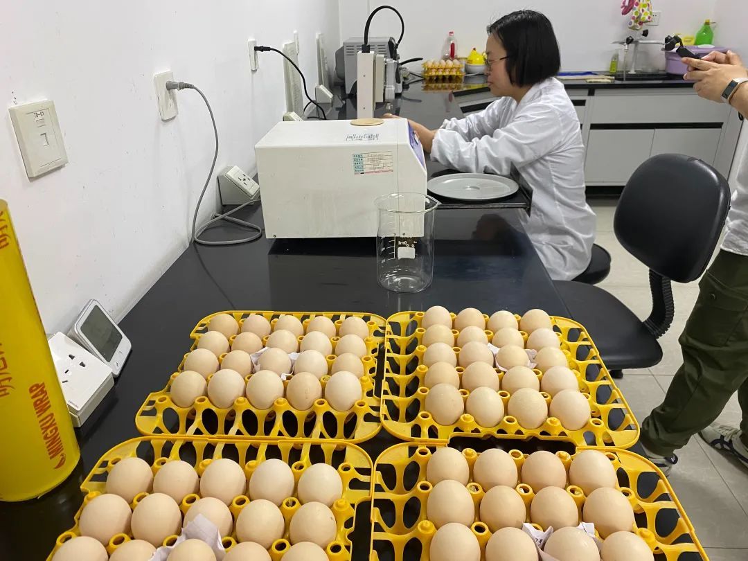 除了(le)配(pei)料精(jīng)準,生(sheng)産(chan)環節(jie)也(ye)采用(yong)全封閉自動(dòng)化雞舍,實現(xian)自動(dòng)投(tou)喂、自動(dòng)撿蛋等(deng)流程(cheng)。而産(chan)下的(de)蛋還要定期送檢(jian),測(ce)量蛋黃顔色、蛋白高(gao)度、蛋殼(ke)強度,看它的(de)新(xin)鮮度咊(he)品(pin)質(zhi)。